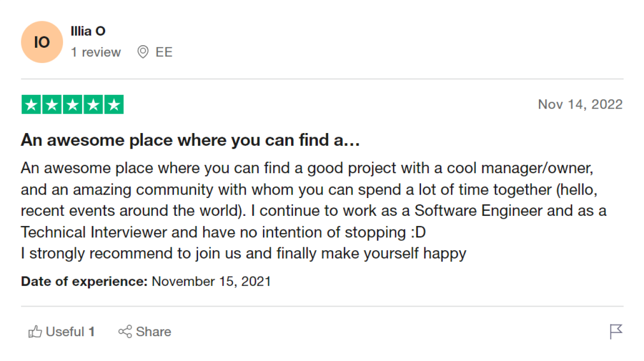 Our approach guarantees hiring only high-qualified engineer. They solve tasks efficiently and quickly without wasting your time and money.